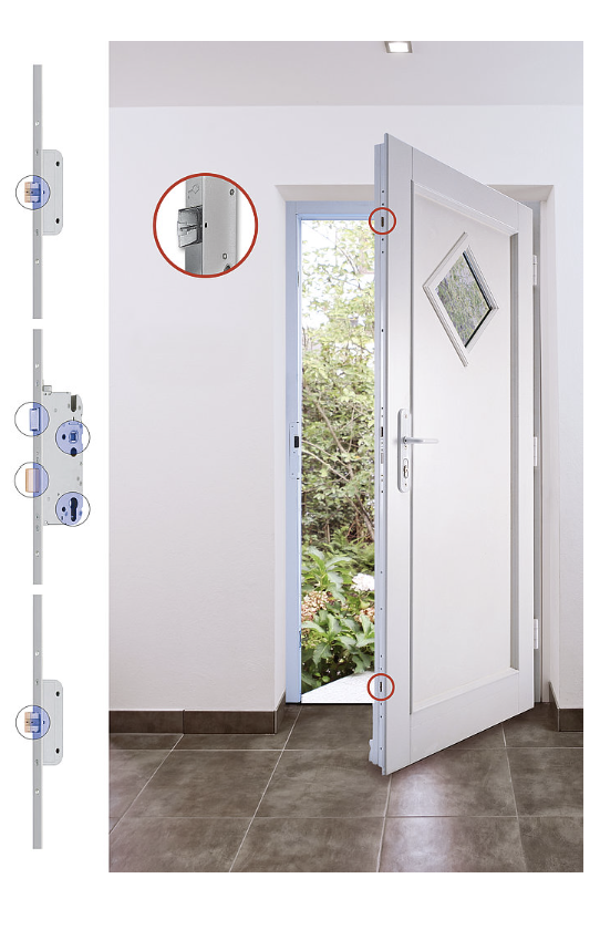 Haustüren müssen vor allem eines sein: sicher. Bei allen Gugelfuss Aluminiumtüren gehört ein hohes Sicherheitsniveau zur Grundausstattung. Unsere Automatik-Mehrfachverriegelung verriegelt Ihre Tür doppelt, sobald sie zugezogen wird – ohne zusätzliches Abschließen. Für noch mehr Schutz sind geprüfte RC-Ausführungen erhältlich – auf Wunsch auch förderfähig.